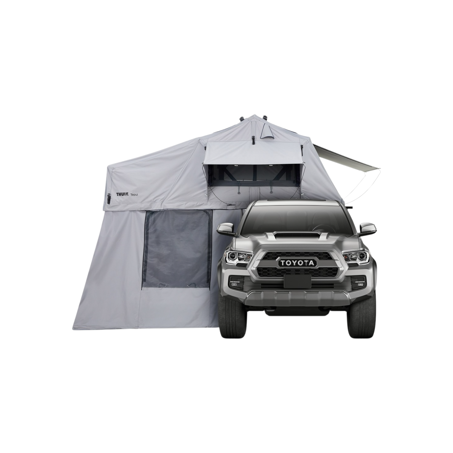 Viel Platz, hoher Komfort – für Abenteuer zu viert - robustes Dachzelt mit geräumigem Vorzelt