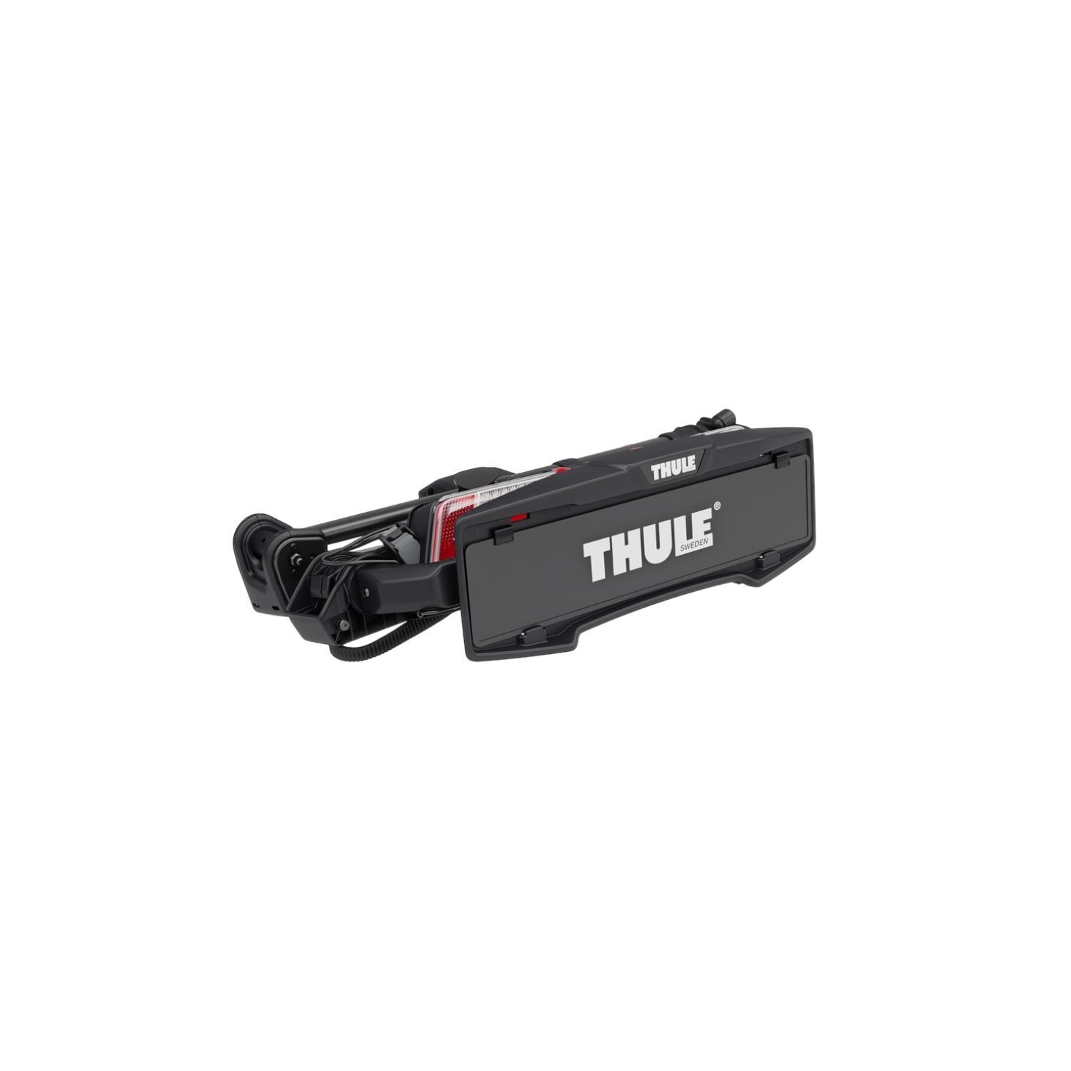 Der Träger ist abschließbar, mit integrierten Rückleuchten ausgestattet und verfügt über einen 13-poligen Anschluss.