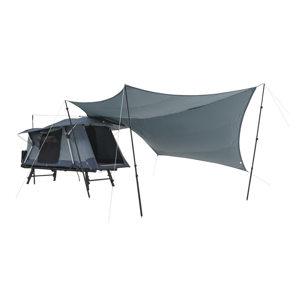 Dank des robusten 4-Stangen-Systems lässt sich die Plane in verschiedenen Konfigurationen aufbauen und bietet so maximale Kontrolle über Schatten, Belüftung und Schutz. Das strapazierfähige 200D Oxford Polyester mit 2000 mm PU-Beschichtung hält auch wechselhaftem Wetter stand.